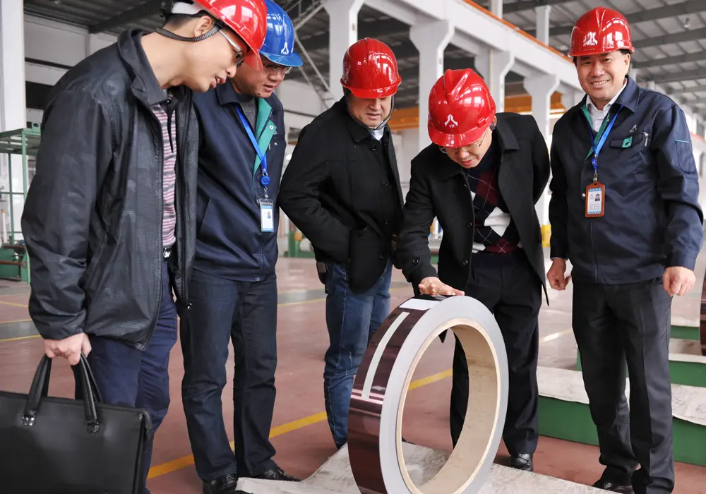 随后,虞董事长陪同赵行长一行参观了公司生产车间,在调研过程中,虞董事长向赵行长一行介绍了公司近几年来的变化、精密冷轧不锈钢市场前景、创新成果以及未来的战略发展方向。赵行长对甬金科技近年来取得的发展给予高度肯定,并表示建设银行要大力度的支持像甬金科技这样坚持以科技创新作为核心竞争力的高新企业,与甬金科技共成长,帮助甬金科技实现再一次的腾飞。